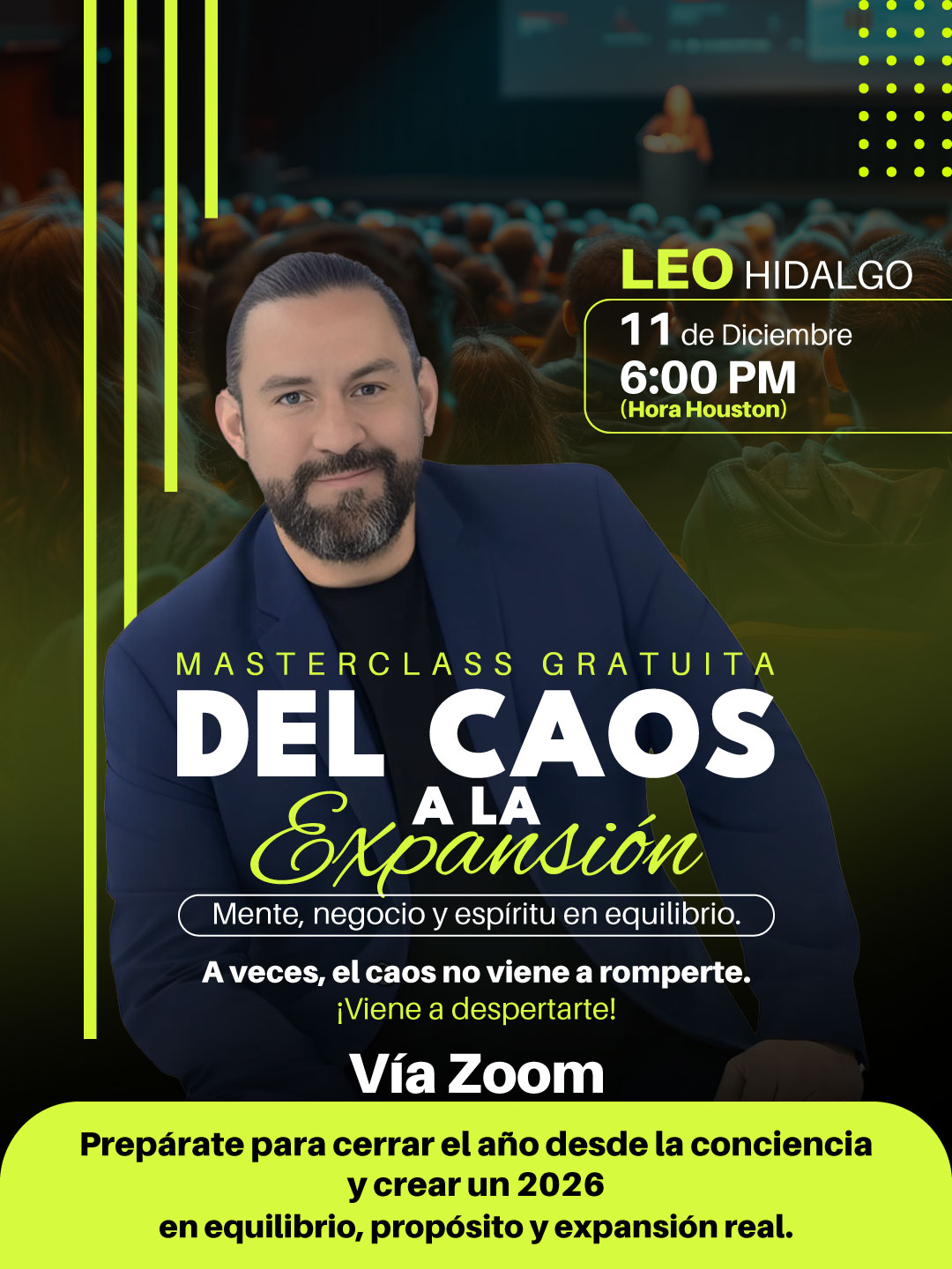 En esta masterclass descubrirás cómo salir del caos mental, emocional y operativo en el que ahora estás atrapado, para expandirte desde un nuevo nivel de conciencia.